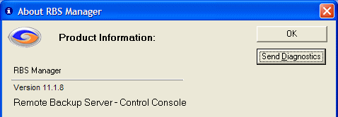 On the RBS Server Manager, the Send Diagnostics button is on the Help / About menu.