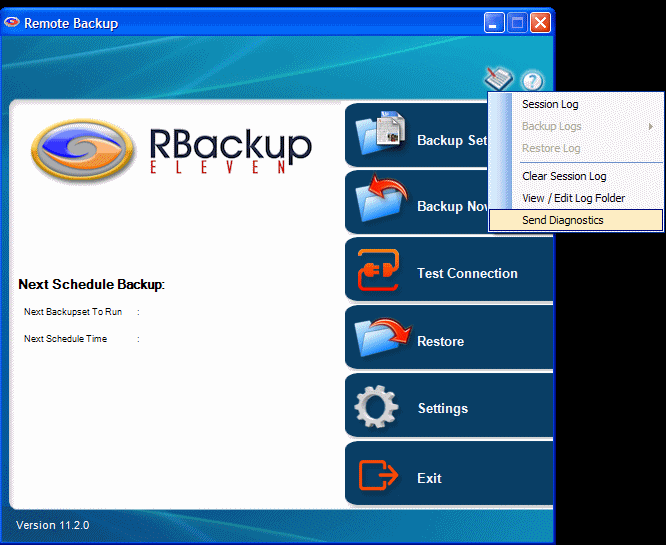 Both the Server and the Client software have a button you can select to send diagnostic information to RBS Tech Support. This information usually includes everything we need to diagnose a problem and help you fix it. The diagnostic packet includes the latest few logs, the registry settings, general program settings, environmental settings, and other information. This is NOT personally identifiable information for the end users.