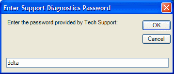 To lessen the chances of end users flooding our Tech Support with unnecessary diagnostic info, end users must enter a password. There are two passwords. Either will work. Case is not sensitive. Please do not distribute these passwords to your end users until they need help. Users should enter one of the following passwords:
