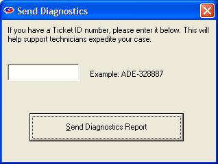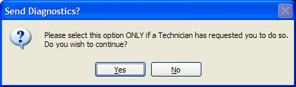 To prevent end users from unnecessarily flooding our Tech Support with diagnostic info we have password protected the Send Diagnostics feature on the Client software. After selecting Send Diagnostics, users will be presented with the following screen:
